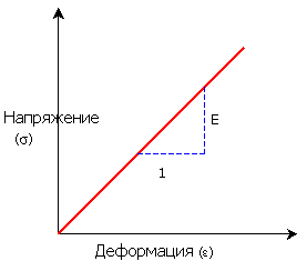 Для линейного материала зависимость растяжение-натяжение также является линейной. Наклон линии соответствует модулю упругости материала (E).