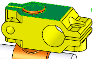 Данные сопряжения типа Расстояние определяют расстояние между верхней круговой гранью каждой из деталей Pin (Болт) и верхней гранью соответствующего Clamp (Зажима). Поскольку сопряжения типа Концентричность (см. выше) уже определили, что круговые грани болтов не могут перемещаться по отношению к оси стержня, то данные сопряжения устанавливают вертикальное расположение каждого зажима.