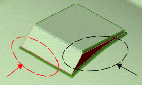 Si el modelo contiene caras curvas y activó la casilla de verificación Buscar caras empinadas, examine también las caras empinadas.