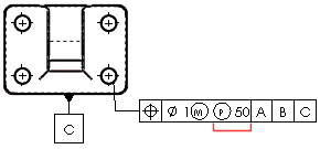 Puede aplicar tolerancias de planeidad y rectitud basadas en unidades. Aplique una tolerancia de este tipo siguiendo el valor de la tolerancia con una barra inclinada (/) e introduciendo los criterios de área por unidad y longitud por unidad.