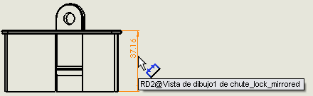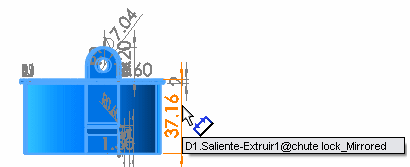 Al crear una pieza simétrica o derivada, puede importar las cotas de croquis y operaciones de la pieza original. Puede incluir estas cotas de referencia en dibujos creados a partir de la pieza simétrica o derivada.