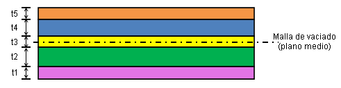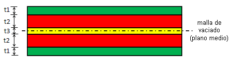Un laminado simétrico tiene una disposición simétrica de los pliegues (materiales, orientaciones de pliegues y espesor) en la superficie media. Esto implica un espesor del pliegue, unas propiedades de materiales y unas orientaciones de materiales simétricos en el plano medio.