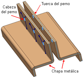 puede conectar dos componentes, varios componentes o un componente y la tierra. Puede definir pernos a través de una pila mixta de sólidos, vaciados y sólidos de chapa metálica. También puede definir un perno si selecciona entidades del mismo componente.
