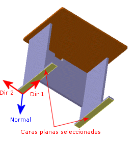 Esta opción se puede usar sólo cuando todas las caras seleccionadas son planas. Cada cara puede estar en un plano diferente y restringirse con relación a sus propias direcciones (Dirección 1, Dirección 2 y Normal).