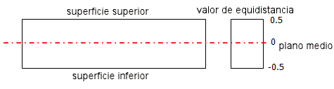 - Alinea la malla con la superficie de referencia definida por un valor de equidistancia que es una fracción del grosor total. La imagen muestra el significado de los valores de equidistancia negativos y positivos.
