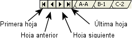En dibujos con múltiples hojas que no caben en la longitud de la pantalla, utilice los botones de navegación en la parte inferior de la ventana de dibujo para saltar a la primera o última pestaña.