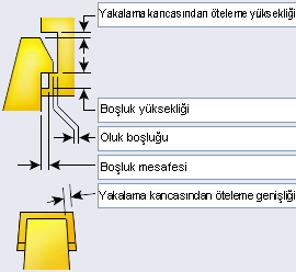 Yakalama kancasından öteleme genişliği'nde oluk, yakalama kancasına uygulanan herhangi bir draft ile eşleşir.