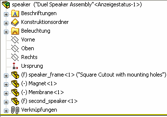 Standardgemäß sind Komponentenkonfigurationsbeschreibungen gleich den Komponentenkonfigurationsnamen und werden nicht angezeigt. Neue Komponentenkonfigurationsbeschreibungen müssen angegeben werden, damit sie im FeatureManager angezeigt werden. Eine Konfigurationsbeschreibung einer Komponente wird in der Teildatei geändert.