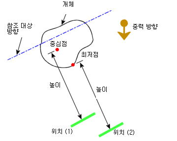 지정된 높이가 물체의 중심점과 중력 방향의 고정 바닥면 간의 거리가 됩니다.