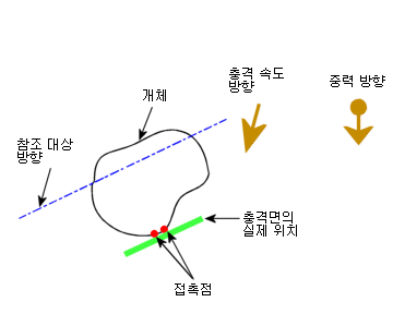 대상 평면과 충격 시의 모델의 속도 방향과 크기를 지정합니다.