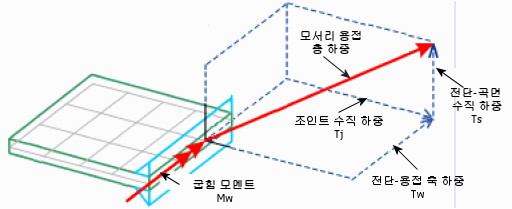 로컬 용접 축 Uw를 따라 용접 부위에 평행으로 작용하는 용접 하중 성분(Tw).