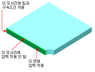 - 쉘 모서리에 압력을 적용하려면, 솔리드의 연관 면을 선택합니다.
