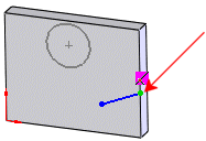 댕글링 핸들을 끌어 다른 스케치 요소에 다시 지정합니다. 잘못된 위치에 치수를 지정하려 하면, 포인터가 로 변경됩니다.