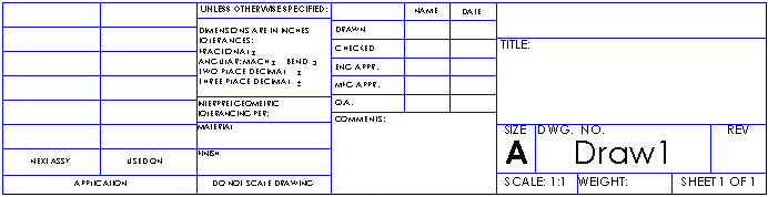 시트 형식 표준에는 제목 블럭이 있습니다. 시트 형식을 편집할 수도 있습니다. (수정된 시트 형식을 저장하여 다른 도면에 사용할 수도 있습니다.) 시트 형식에 선과 텍스트를 추가하거나 이동, 형식을 바꾸거나 지울 수 있습니다.