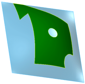 При использовании параметра Не отсекать поверхность можно установить заплаты для отверстий поверхности и внешних кромок путем растягивания существующей поверхности вдоль ее естественных границ. Можно также удлинить естественные границы поверхности, указав значение процента, или соединить конечные точки, чтобы заполнить поверхность. Используйте инструмент Не отсекать поверхность с любой импортированной поверхностью или создаваемыми поверхностями.