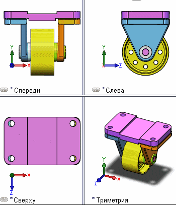 Можно просмотреть модели и чертежи в одном, двух или четырех графических окнах.