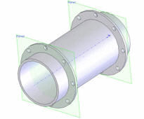 Este empalme también utiliza planos. Si DriveWorksXpress estuviera suprimiendo o desactivando la supresión de la operación de brida, la cara de la brida utilizada en la relación de posición ya no estaría allí.