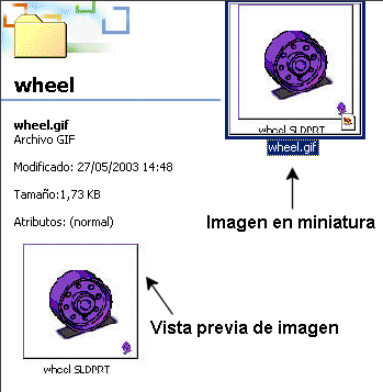 Utilice el Explorador de Windows para ver imágenes en miniatura y para acceder a la información de propiedades personalizadas para los documentos de SolidWorks.