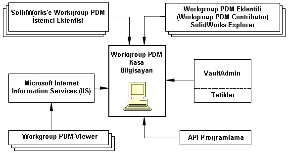 Bir Workgroup PDM sistemi şu şekilde gösterilebilir: