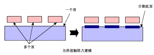 要在一个大面与若干个较小的面之间指定不同的热阻,必须先将大面拆分为若干个较小的面,才能为不同的相触面组指定热接触阻力。