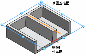 如果添加拔模,您可以设置草图基准面或壁接口处的厚度。 选择以下项之一: