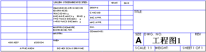 标准格式包含标题栏。 SolidWorks 允许您编辑图纸格式。 (您也可保存图纸格式在将来的工程图中使用)。 您可添加、移动、格式化、及删除直线和文字。