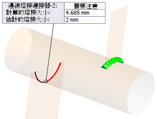 PropertyManager 中指定)小於程式計算得出的熔接大小的每個熔接連接器。 這些連接器在圖面中將顯示為紅色。