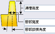 • 溝槽寬度至唇部寬度,加上唇部和溝槽之間的間距。