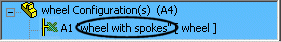 • 在 ConfigurationManager 中用右鍵按一下最上方的零件或組合件名稱,然後選擇樹狀結構顯示顯示模型組態描述