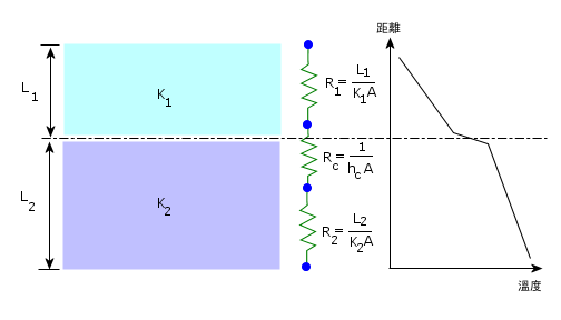 當需要完整描述兩傳導介質介面的熱傳遞時,電流及熱流的類比就變得很有用。基於機械加工的限制,當兩實體表面接觸時,無法構成完美接觸。因為兩接觸面並非完全光滑,所以兩者間總會有些微的間隙。