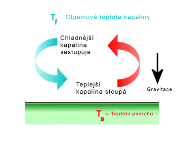 Pohyb kapaliny sousedící s povrchem tělesa je způsoben vztlakovými silami vyvolanými změnami hustoty kapaliny kvůli rozdílům v teplotě mezi tělesem a kapalinou. Když je horká deska nechána vychladnout na vzduchu, částice vzduchu u povrchu desky se zahřívají, jejich hustota se snižuje a proto stoupají vzhůru.