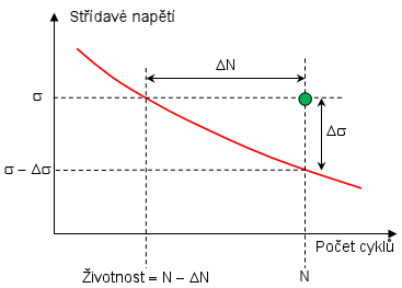 - Bod leží pod křivkou. V tomto místě nedojde k selhání v důsledku únavy.