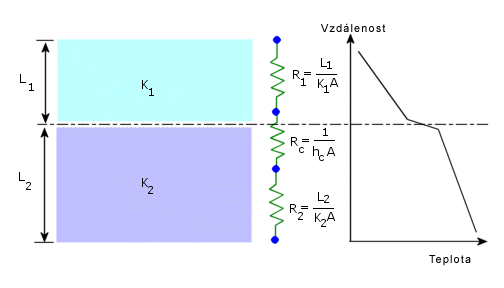 Přenos hc je podobný součiniteli konvekce převodu tepla a má stejné jednotky (W/m2 º K). Pokud je ΔT rozdíl teploty na rozhraní plochy A, velikost převodu tepla Q je dána Q = A hc ΔT. Pomocí analogie s elektrickým proudem můžete napsat Q = ΔT/Rt, kde Rt je odpor tepelného kontaktu a vypočítá se Rt = 1/(A hc).