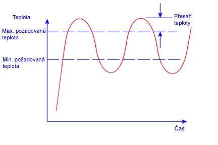 Pokud teplota v místě termostatu konverguje k teplotě uvnitř nebo venku požadovaného rozsahu (jako křivky 1 a 2), definovaný termostat nehraje roli při řízení tepelného zdroje. V takovém případě změňte tepelný zdroj, ostatní tepelná namáhání nebo uchycení, vlastnosti materiálu nebo umístění termostatu.