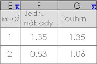 Rovnice v buňkách nebo ve sloupcích jsou označeny značkou rovnice.
