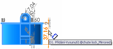 | Zrcadlený díl zobrazující importované kóty |