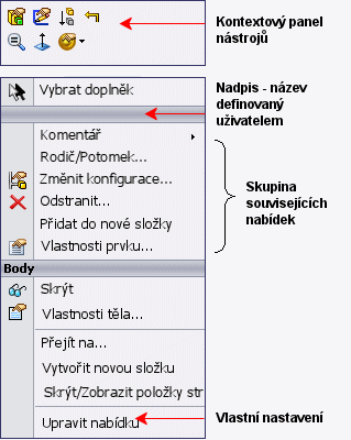 - Kontextový panel nástrojů nejčastěji používaných příkazů