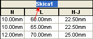 - Poklepáním na další položky (prvky, skici atd.) na grafické ploše nebo stromu FeatureManager přidáte jejich konfigurovatelné parametry do tabulky.