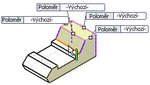 Na grafické ploše se u ohybu a hran nastřižení zobrazí popisy, pokud jste ve správci PropertyManager vybrali možnost Zobrazit popisy. Popisy můžete použít ke změně poloměru ohybu a hran nastřižení.