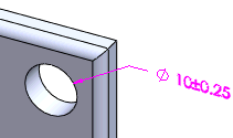 Nástroj Kóta velikosti DimXpert slouží k umístění kót velikosti tolerance na prvky DimXpert. V následujícím postupu okótujete jednoduchou díru.