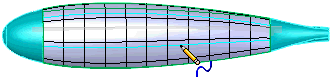 Umožňuje přidat symetrické regulační křivky v jednom směru přes osu symetrie dané plochy. Když dosáhnete roviny symetrie, zobrazí se rovina, na které můžete vytvořit regulační křivku. Tato možnost slouží k návrhu jedné poloviny modelu; funkce Volný tvar tento návrh pak symetricky aplikuje na druhou polovinu. Video: Rovina symetrie volného tvaru