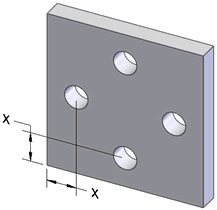 Nastaví typ a hodnoty tolerance použité pro prvky umisťující pole od výchozích prvků. U dvou prvků si všimněte, jak prvek nejbližší k počátku slouží k umístění pole.