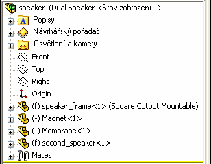 Názvy konfigurací součástí můžete zobrazit ve stromu FeatureManager.
