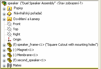 • V horní části stromu FeatureManager klepněte pravým tlačítkem myši na název dílu, sestavy nebo výkresu a vyberte možnost Zobrazení stromu > Zobrazit popisy konfigurací součástí.
