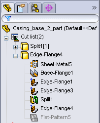 Když přidáte prvek k tělu, název tabulky přířezů se změní podle posledního přidaného prvku. Když zde přidáte lem z hrany, název těla se změní z Split1[2] na Lem4 z hrany.