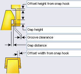 For Offset width from snap hook, the groove matches any draft applied to the snap hook.