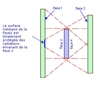 Une face concave comportant un maillage d'une finesse raisonnable peut rayonner sur elle-même. Les faces planes et convexes ne rayonnent pas sur elles-mêmes. Ces effets sont automatiquement pris en compte.