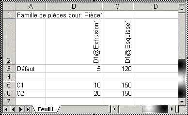 - une cellule vide dans la colonne des noms de configuration, il interrompt le traitement, considérant qu'il est arrivé à fin de la famille de pièces