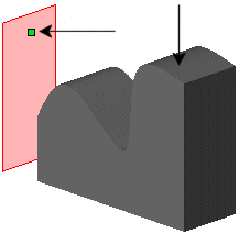 Parallèle Crée un plan parallèle au plan sélectionné. Par exemple, sélectionnez une face comme référence et un point comme autre référence. Le logiciel crée un plan parallèle à la face et coïncident au point.
