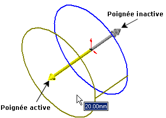 Les poignées couvrent la longueur des extrusions. Faites glisser la poignée jusqu'à la profondeur d'extrusion souhaitée. Cette poignée s'allonge alors pour couvrir la longueur spécifiée.